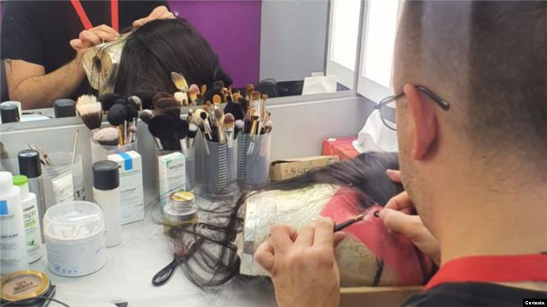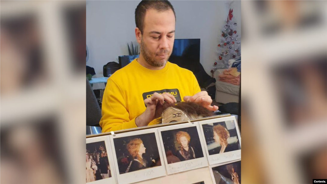 Jean Carlos de Blas iniciando la confección de una peluca.
