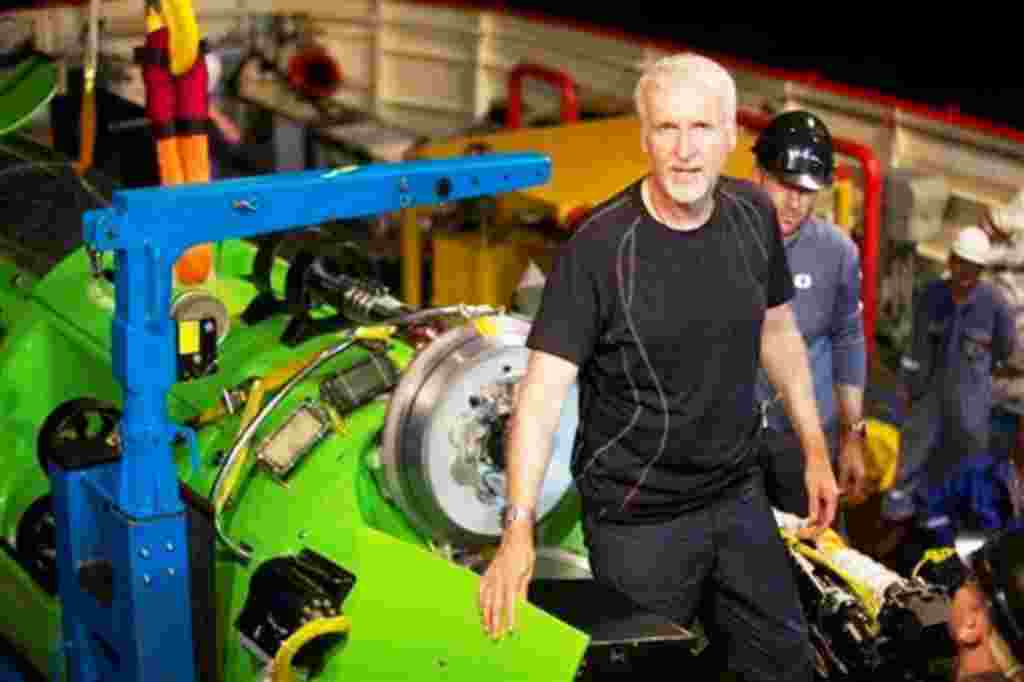 James Cameron junto al Deepsea Challenger con el cual se convirtió en solamente el segundo intento exitoso de descender a las fosas Marianas, el primero en solitario.