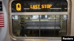 Un muchacho viaja en el subterráneo de Nueva York mientras el tren llega a estación de Coney Island, antes del cierre del servicio, a las 7 p.m. del domingo 28 de octubre de 2012, por la llegada del huracán Sandy. [Foto: Reuters].